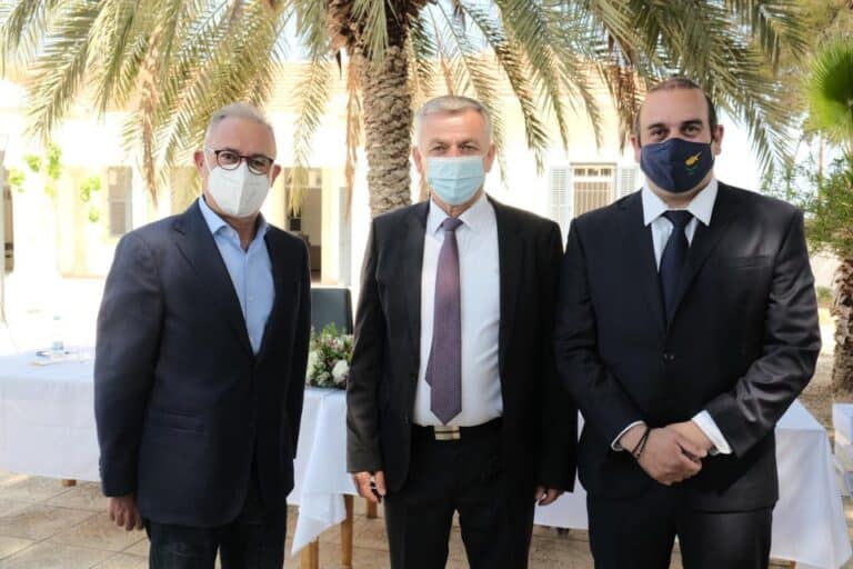 Στην τελετή υπογραφής του συμβολαίου για την κατασκευή του δρόμου Πάφου-Πόλεως Χρυσοχους παραβρέθηκε σήμερα ο Πρόεδρος του Δημοκρατικού Συναγερμού κ.
